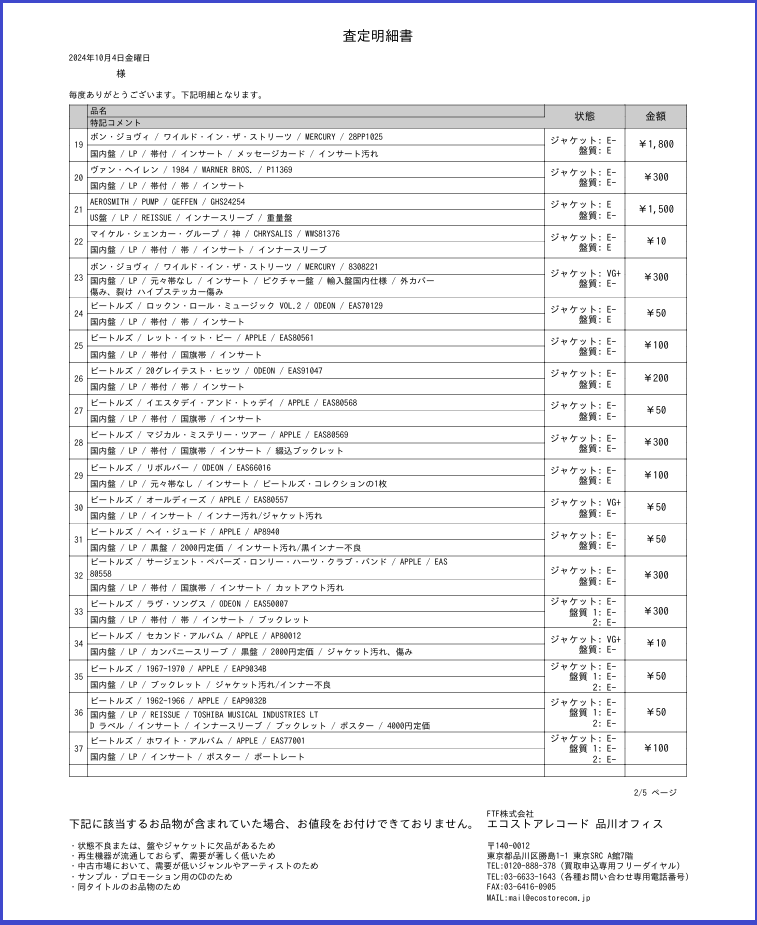 「エコストアレコード」でレコードを買い取ってもらいたいんだけど、実際のところ買取金額ってどうなんだろう、、、