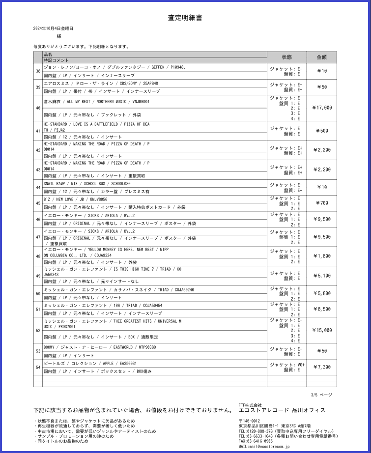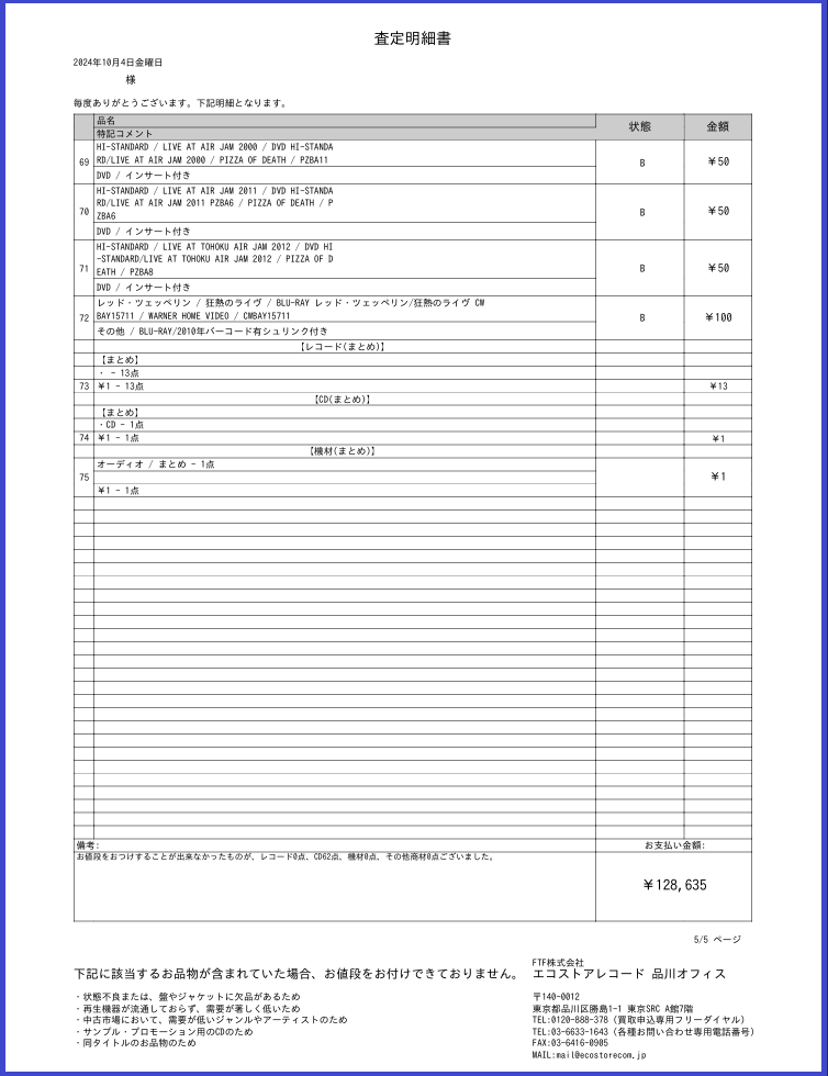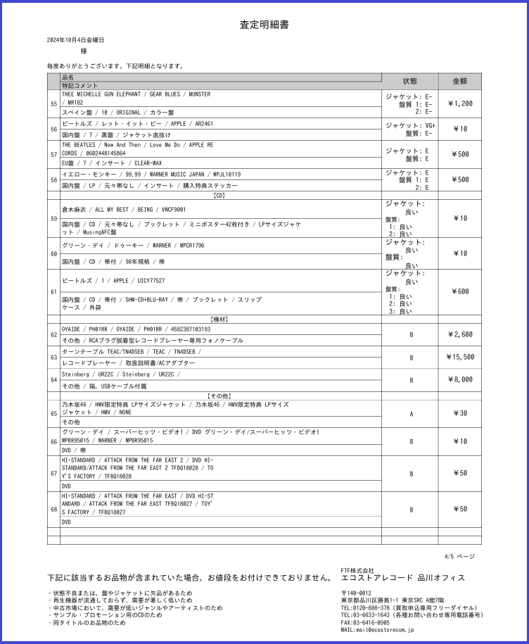 僕は今回レコードがほとんどでしたが、プレーヤーや周辺機器も買い取ってくれるので、まとめて色々売りたい場合はとっても便利です。
