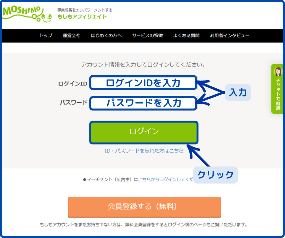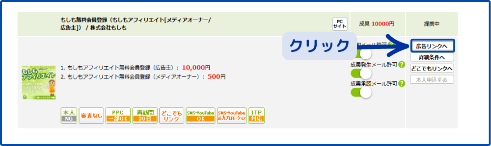 もしもアフィリエイトの会員登録がまだの方はもしもアフィリエイトへどうぞ。