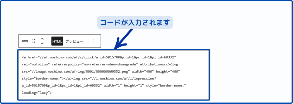 さきほどコピーしたコードを記事に貼りつけていきましょう。
